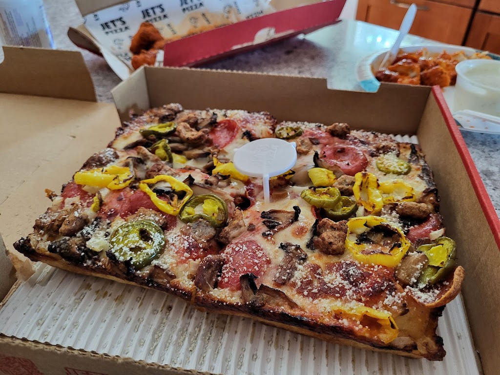 Never been to Madison. Never had Detroit style pizza. In town for a family member at the hospital. Was really craving Buffalo Chicken pizza. WOW! Jets delivered!!! So damn good. Lots of flavor. Delivery time was quick. Homemade ranch. Will definitely be ordering again!