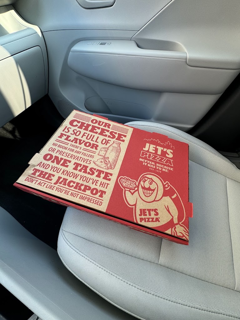 It was our first time having Jet's Pizza. We were in Madison for the weekend. It was the best tasting deep dish pizza we ever had. Also, the ranch was amazing!
