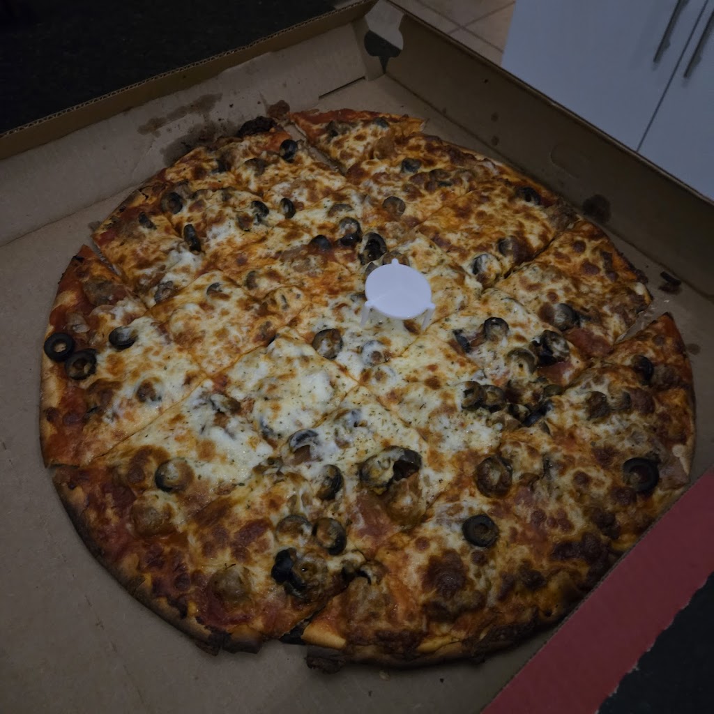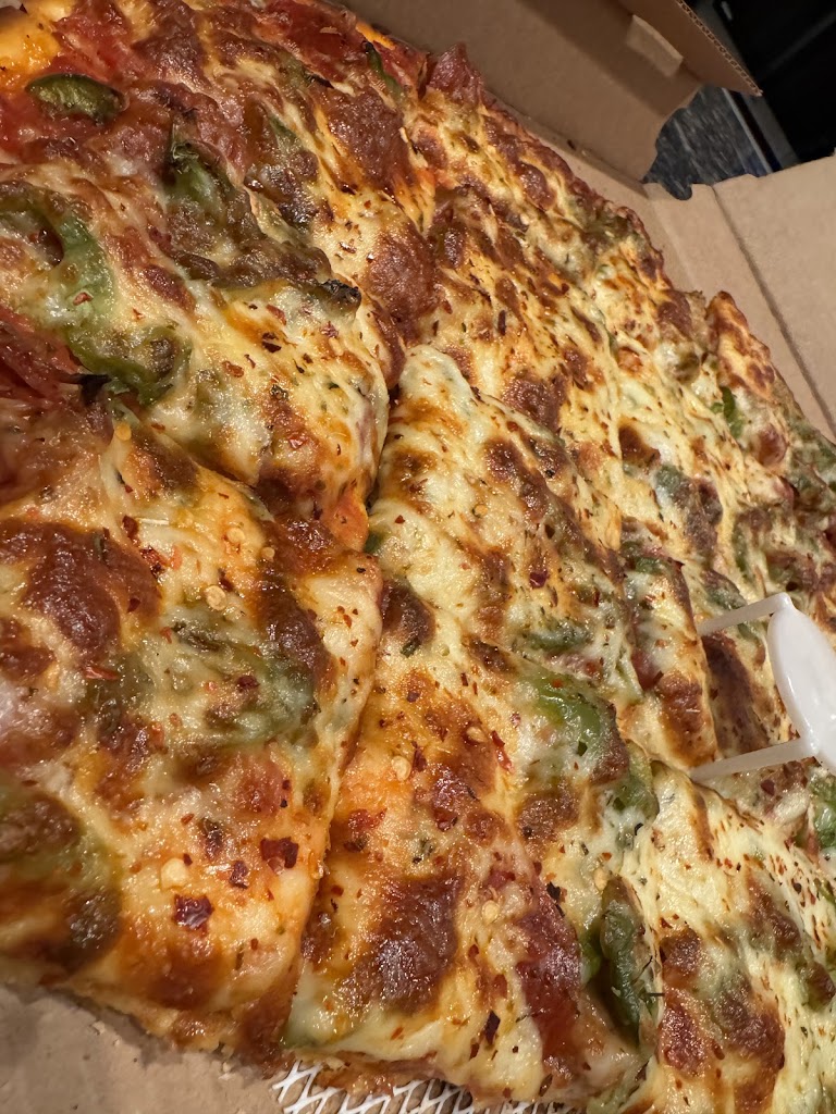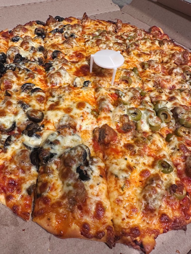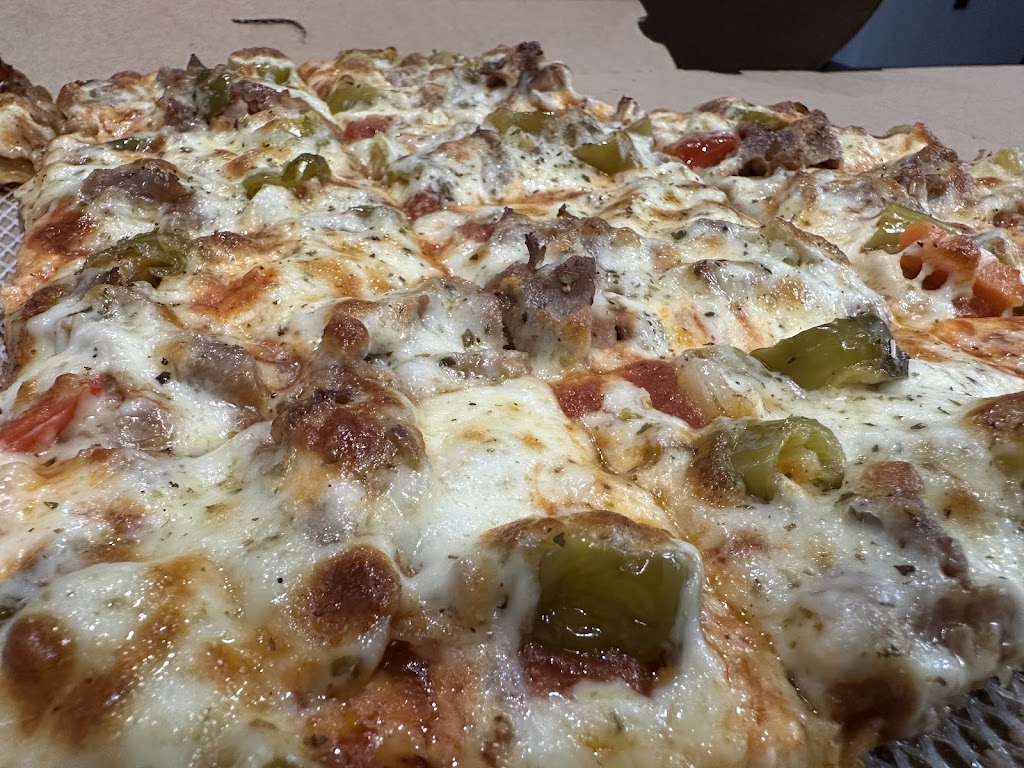 This pizza was amazing good amount of sauce cheese and sausage full of flavor.Crust is fresh not cardboard .They will definitely be a weekly stop for us .Looked so good my hubby started eating it in the car.