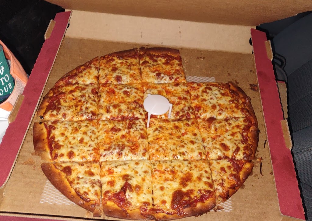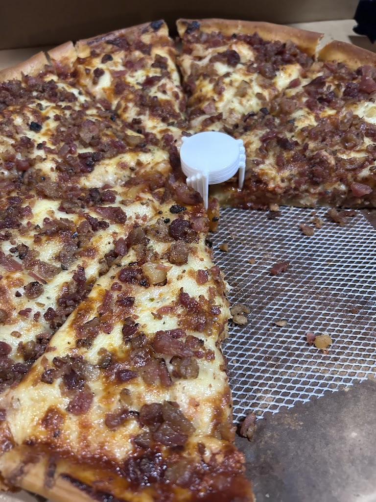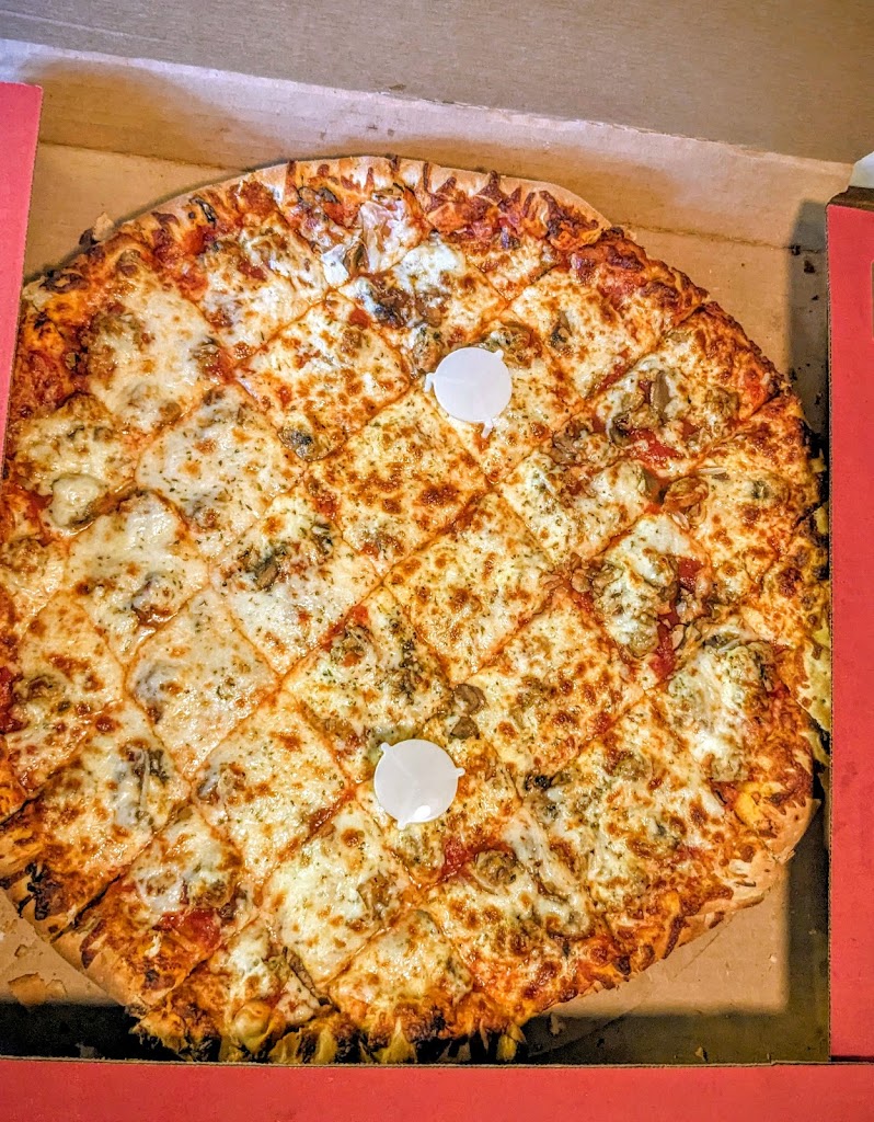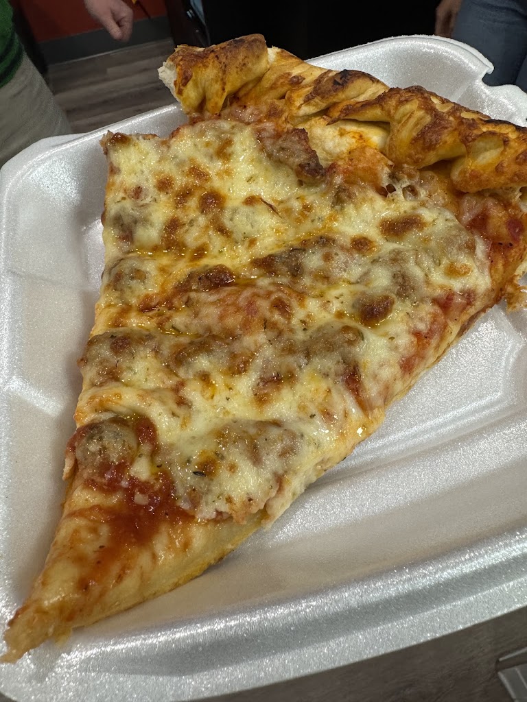 This pizza was amazing good amount of sauce cheese and sausage full of flavor.Crust is fresh not cardboard .They will definitely be a weekly stop for us .Looked so good my hubby started eating it in the car.