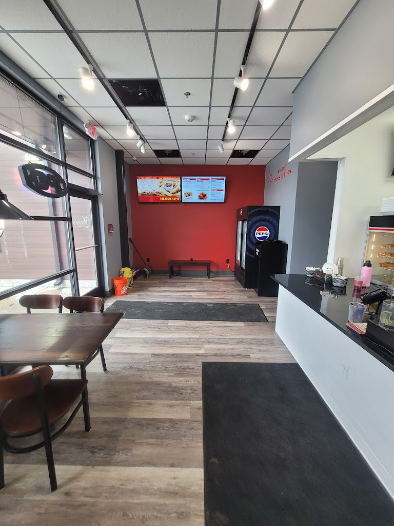 Ordered several pizzas for a company lunch. Pizza was done on time with no wait time, staff was incredibly helpful, toppings are generous! Designed to be a take out/delivery place, but there is a small dining area, which was nice and clean. Will definitely be visiting them again!