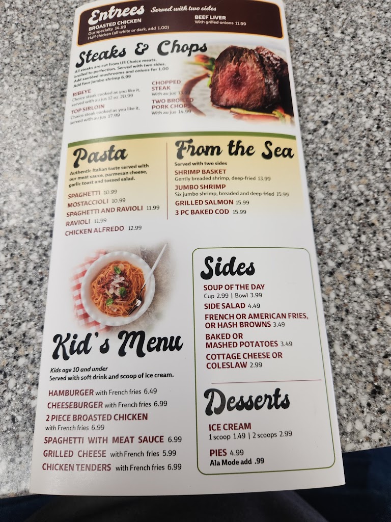 Great small town diner ,the food was ok a bit greasy but good 🤤 service was good too ,very kind and attentive waitress always making sure we had everything we needed the place looks like it used to be a big chain restaurant in its past life all in all would recommend if you want some home style meals the pricing was very fair IMO and portions were decent will come back on my next trip to "governor dodge".(Get yourself the country fried steak 🤤)