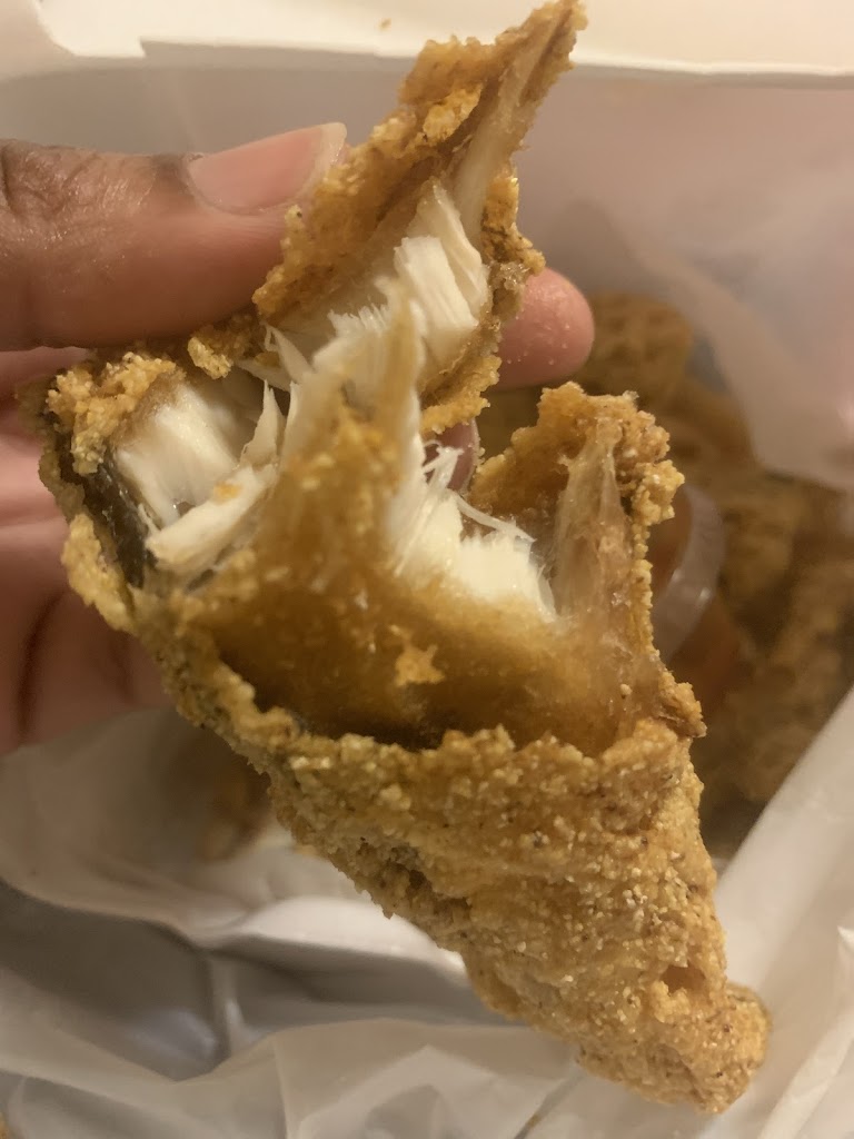 Not a big fan I don't know if it's in the breading or what but chicken wings should not be chewy and hard to bite into fish fillets extremely thin overly cooked feels like you're eating a cracker it's like an oasis for those who are extremely desperate and hungry and need something in their stomach not worth the price