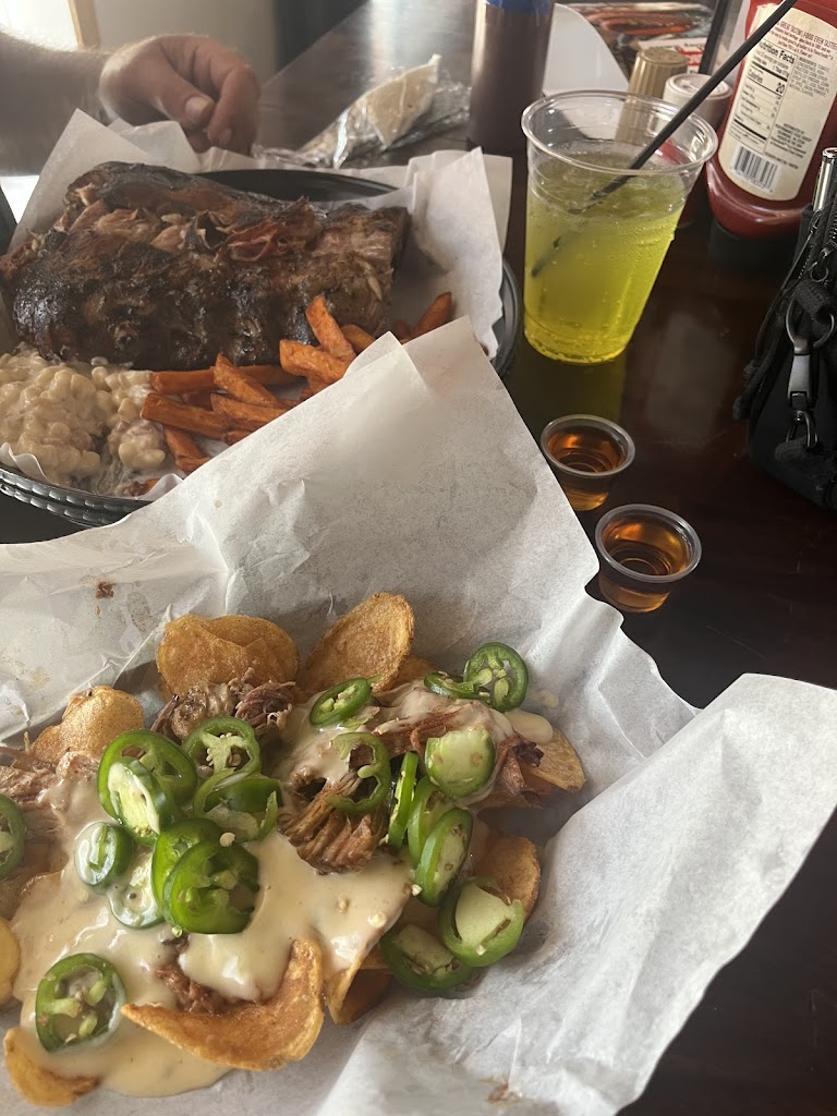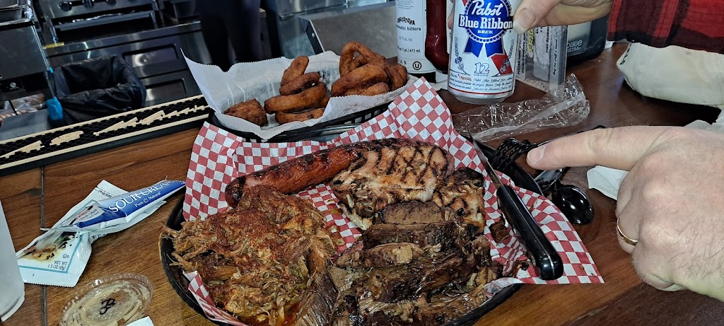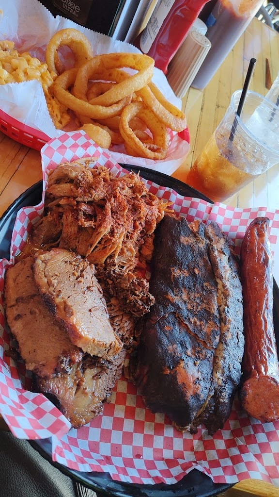 We saw this place an the way to the campground. We planned the final day around going here for lunch and we're so glad we did. The Ultimate Meat Lover's Platter was enough for the 4 of us(2 adults, 2 kids) to share and was delicious! We had the fries, rings, and smoked mac n cheese. YUM! The staff was friendly and the atmosphere was great. If you're near here, don't question whether to stop. DO IT, you won't be disappointed!