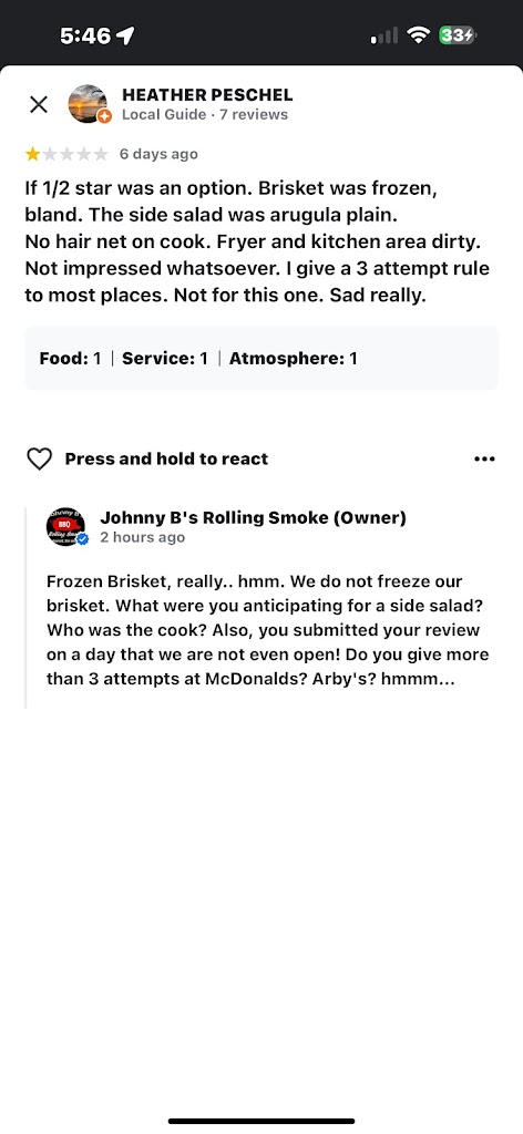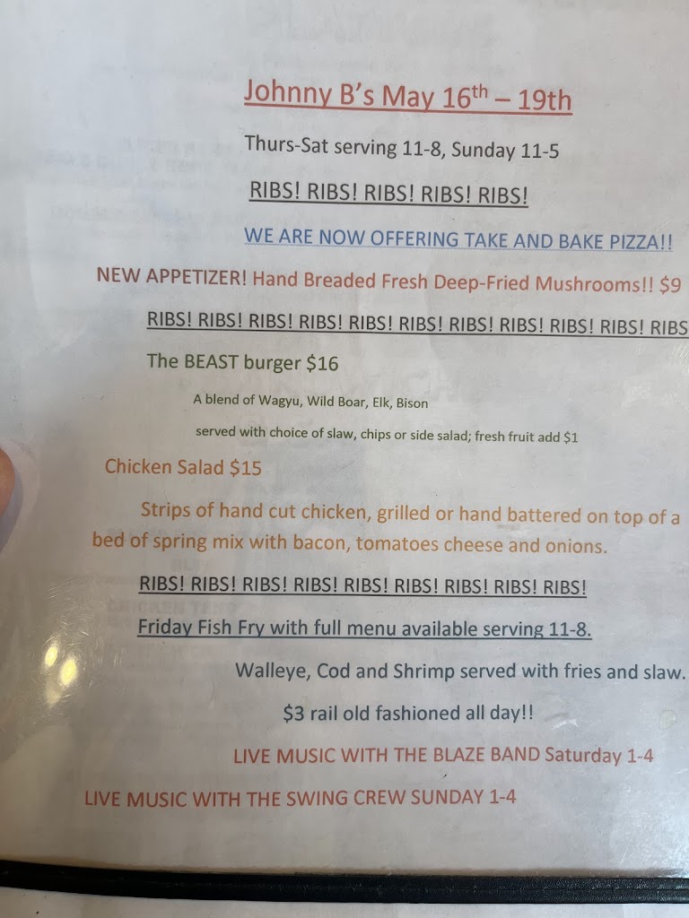 Highly recommend Johnny B’s! This local establishment offers friendly service and phenomenal food.