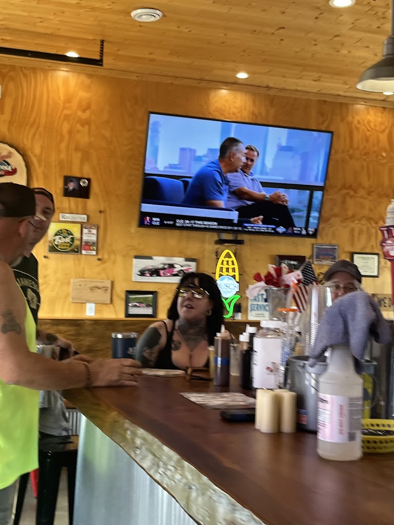 We stopped here on the way home from camping. Cute environment and the food was ok. The service was terrible. The man with the handle bar mustache was rude and not to just me. They way he throws food and drinks down on the counter.