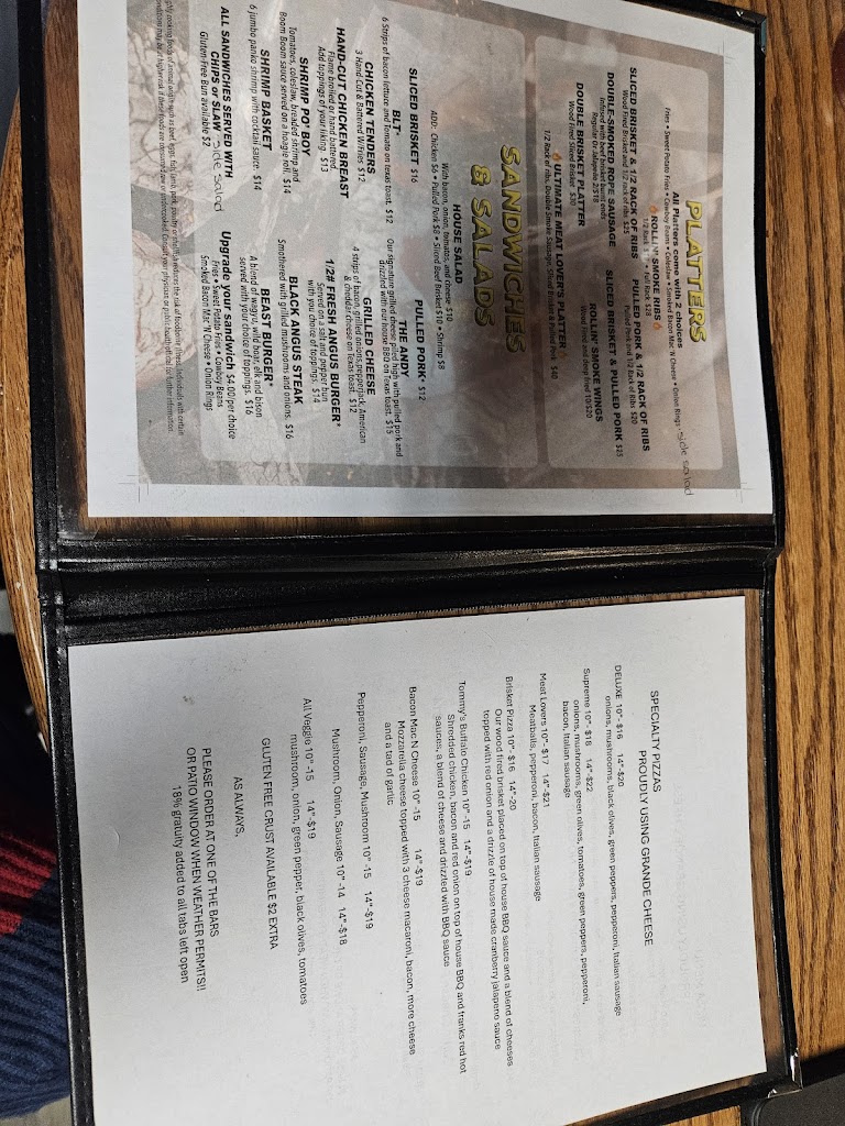 We have eaten here multiple times and are NEVER disappointed! We have gotten their Ultimate Meat Lovers Platter (4 kinds of smoked/barbecued meats plus 2 sides) Enough for my husband and I to share plus enough to share the next day! Just went for their corned beef & cabbage. My husband said he has never had better!!!! Owners are super nice people!!!