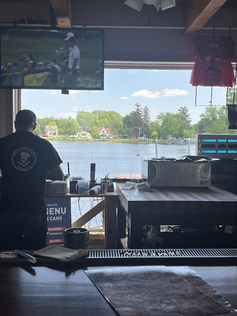 Small place right on the lake, great food and atmosphere. Summer time they have lots of bands. Fall/winter they have sports and delicious fish fry.