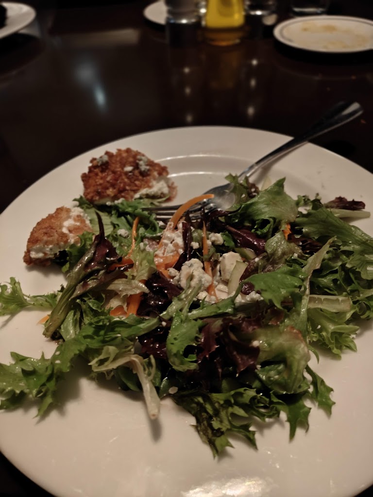 The stuffed meatballs we had were so moist and delicious! The salad was great! The Parmesan Crusted NY strip was cooked medium rare, as requested. Delicious! The loaded garlic potatoes were delicious also!