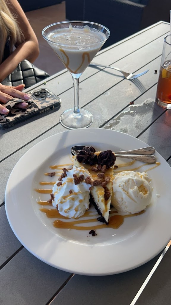 Swanky Italian restaurant in a Hilton hotel. They do have a patio & full bar.
