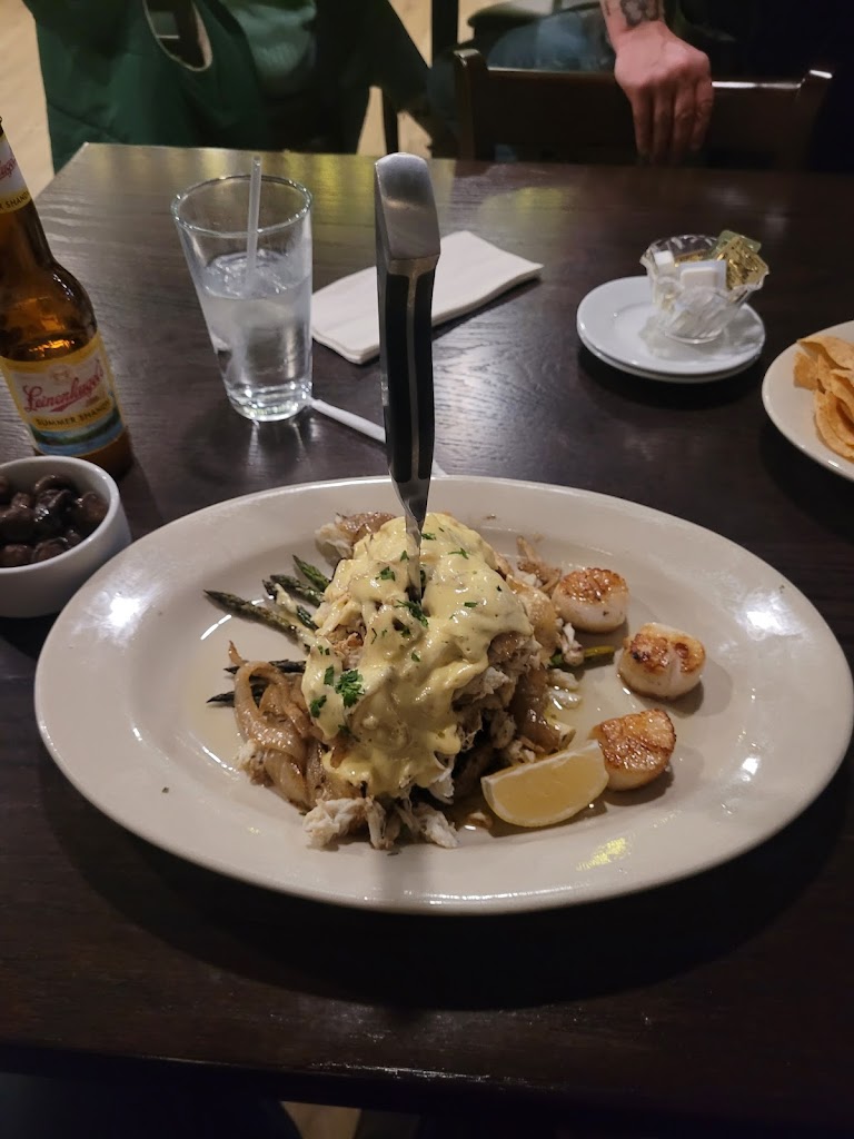 The less exciting parts: my brother's loaded baked potato was cooked all the way through, BUT lukewarm and the cheese was not melted and it wasn't going to be. I'm not sure how that happens! His bone in ribeye was also cooked medium well, when he asked for medium rare. Both cuts of meat were a little less tender than we expected. The "seafood bisque" was ungarnished and uninspiring. And optional "seafood topping" could be a way to add a reasonable cost "Oscar style" option.....but it came across as crab meat from a can on top of the steak. The soup came out quickly, however, they forgot my salad until our entrees were brought out, which really disrupted the flow of my meal and experience. Given it was fairly slow at the time, that was inexcusable. The salad was plentiful, fresh, and tasty, however.
