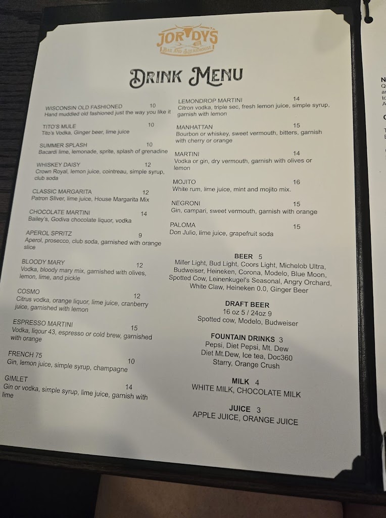 Been waiting since Steakfire left for a great steakhouse to come to Watertown...Jordy's is it!! Restaurant is warm & inviting. We had a group of 10, service was excellent and food was top-notch. Drinks were done well also. I can't wait to go back!!