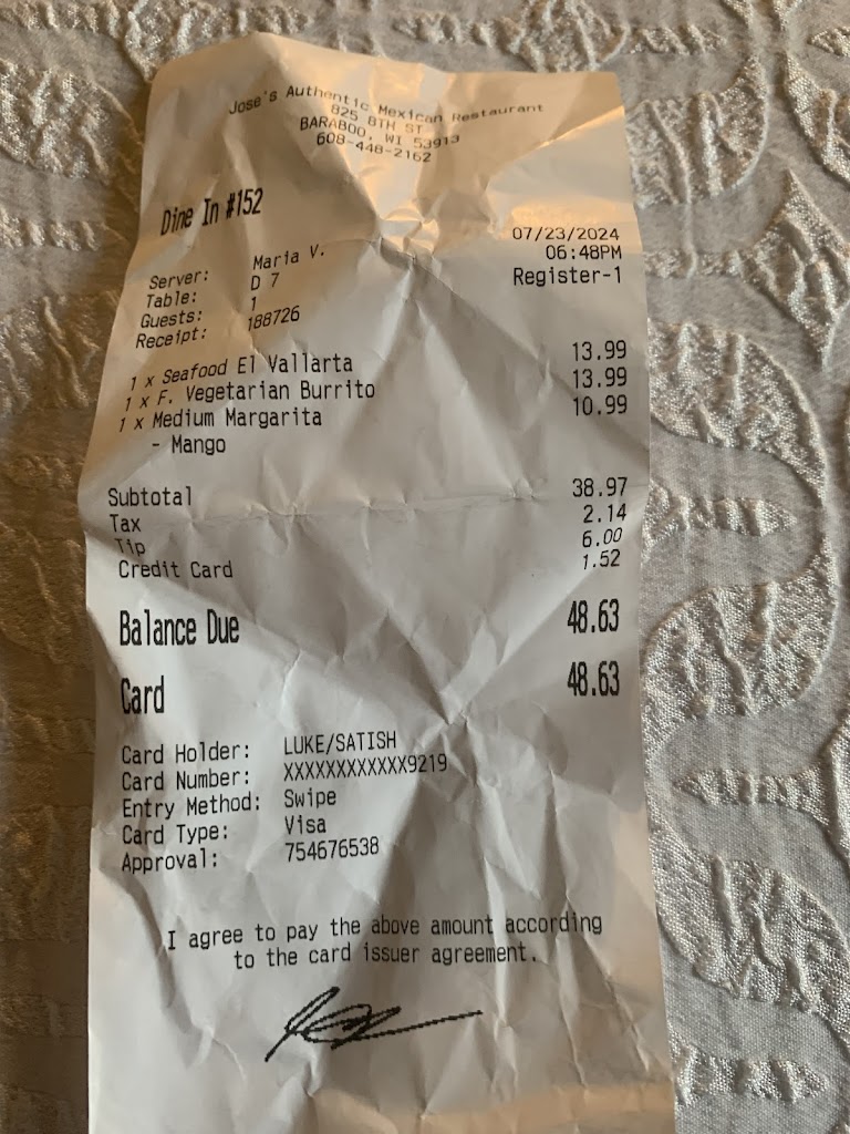 My kids and I often go to this restaurant. Atmosphere, food, and service are much better than the Jose's in the Dells. I would recommend this restaurant over many Mexican restaurants in the surrounding areas.