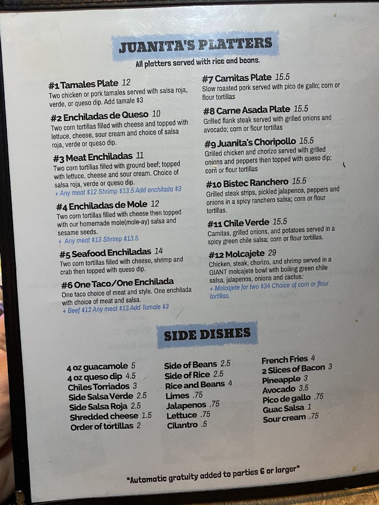 Juanita’s Mexican Restaurant is wonderful. We just went there for our 35th wedding anniversary. Excellent service and food. The new place is so spacious. I love the patio too. Congratulations on the move!