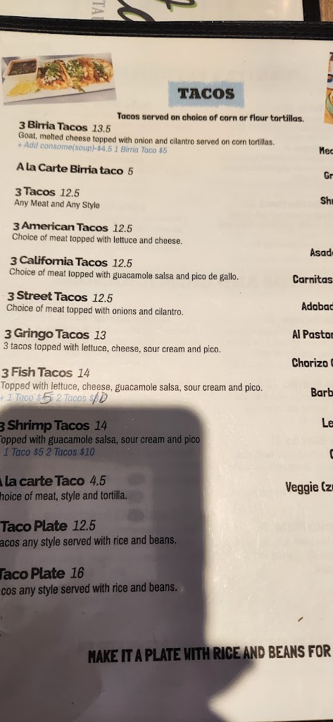 I ate here a few weeks ago while visiting in town. The birria tacos tasted great but I was a little upset that they charge over 4 dollars for the consomé that traditionally ALWAYS are served with birria. So it was $15 for 3 tacos and another 4 for the consomé and that doesn’t include rice and beans if I wanted that too. Great meal but the pricing isn’t right and with so many other options I don’t see a reason to go back.