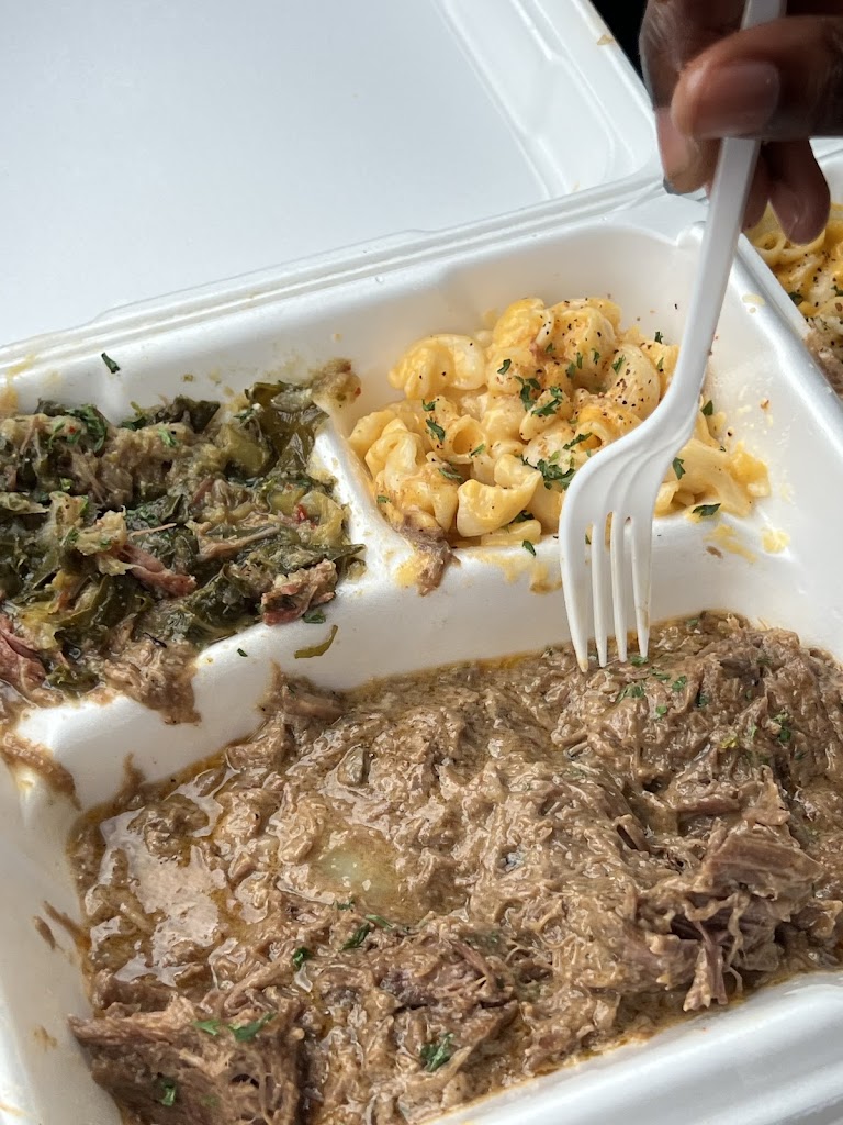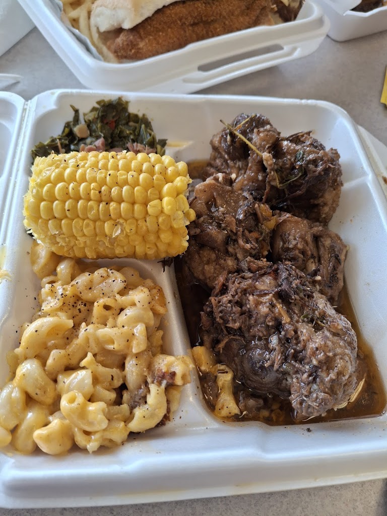 Ordered the Pot Roast on Soul Food Sunday. I was taken aback to see the pot roast came without potatoes, onions or carrots but just the meat, the meat had a decent flavor. I also ordered the Mac and cheese which imo was too mushy with a peculiar cheese taste, and the dressing which lacked the right combination of flavors. The portions were small, and the food left a lingering taste in my mouth. The presentation needs work as well, juices and grease were splattered all over the inside of the container. People tend to eat with their eyes first, so what you prepare needs to look appealing, taste comes second in order. I’ll admit that I do like the Carmel cake, it’s a real two layer slice and the Carmel is executed well. God Bless.