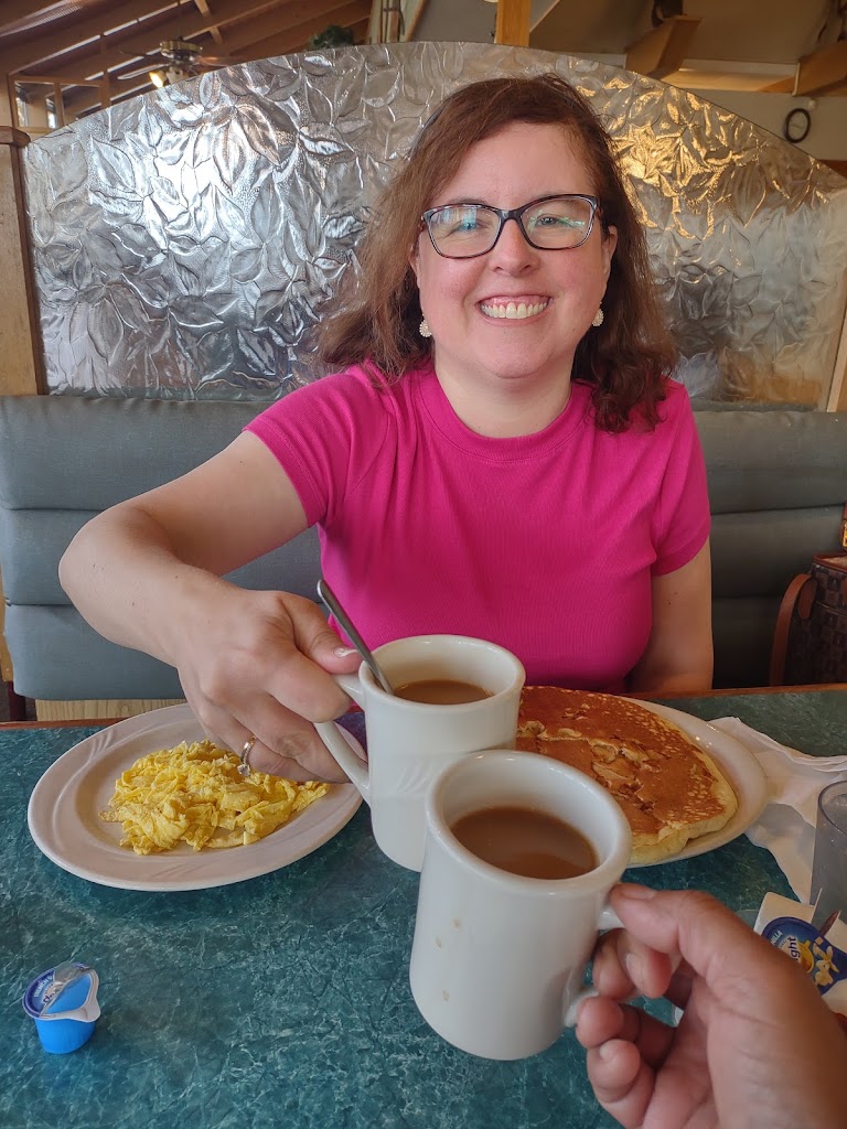 I left paying for a to-go cup that I did not take. The Wi-Fi was 0.55 on my tester. The tester struggled to even process a test. When I explained that I did not touch anything at the table, the cashier suggested a to-go cup which I agreed to, however she brought me a styrofoam W plastic lid. After my Wi-Fi test I asked the host if there was a better Wi-Fi, he answered that it. Sad bc I looking forward to coffee and a pancake.
