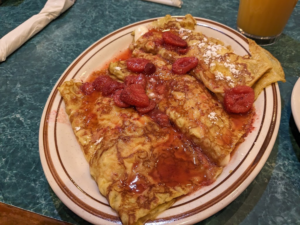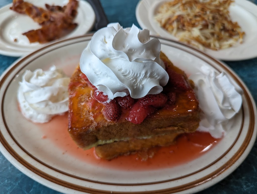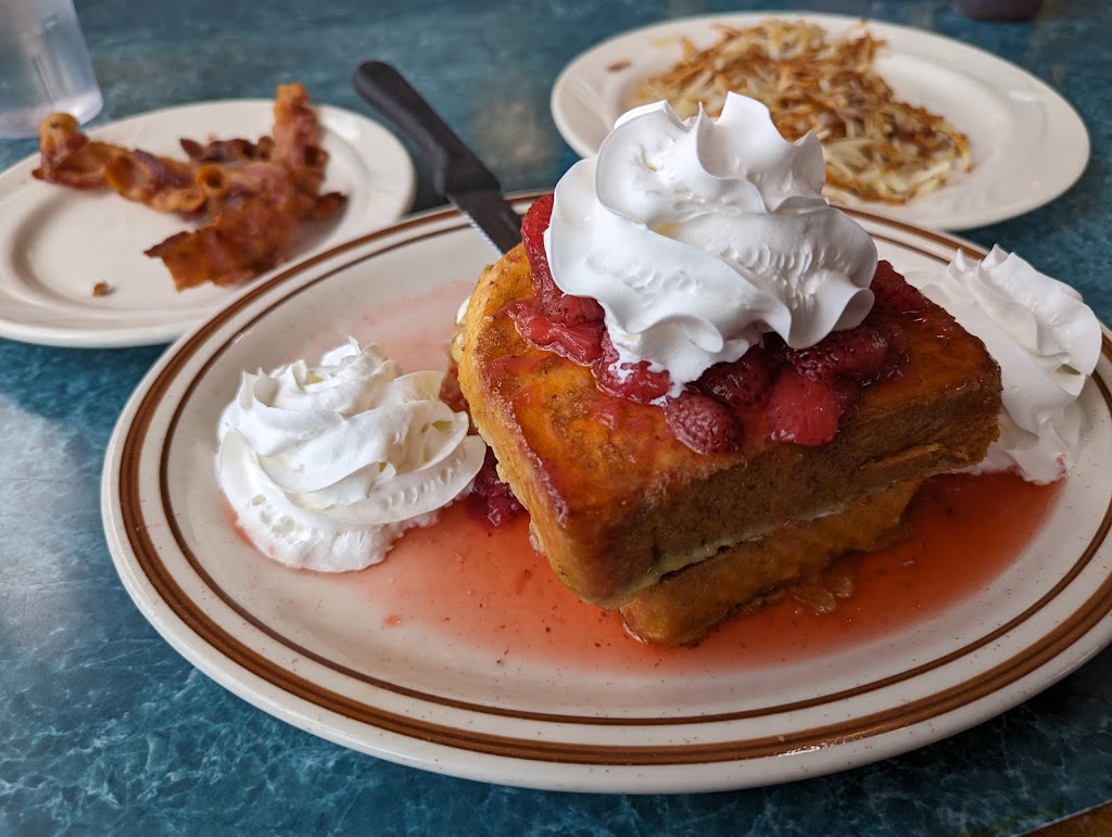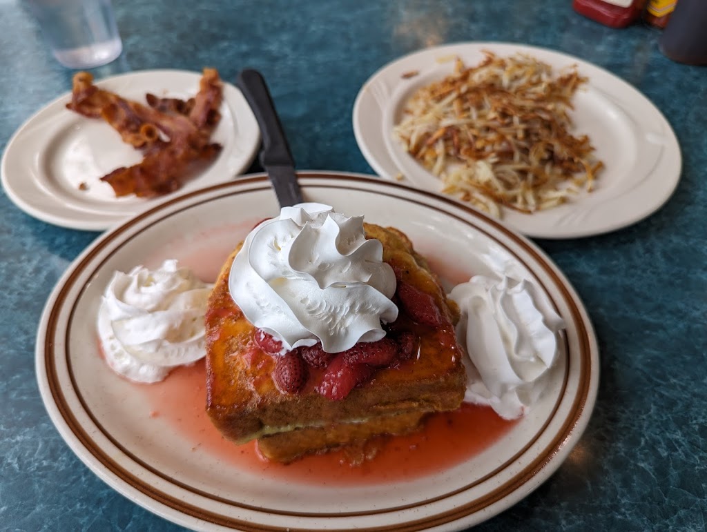 I went here for breakfast. I had the strawberry French Toast. It was good. I also had a side of bacon, a little disappointed in the size of the side of bacon. I had hash browns and they were really good.
