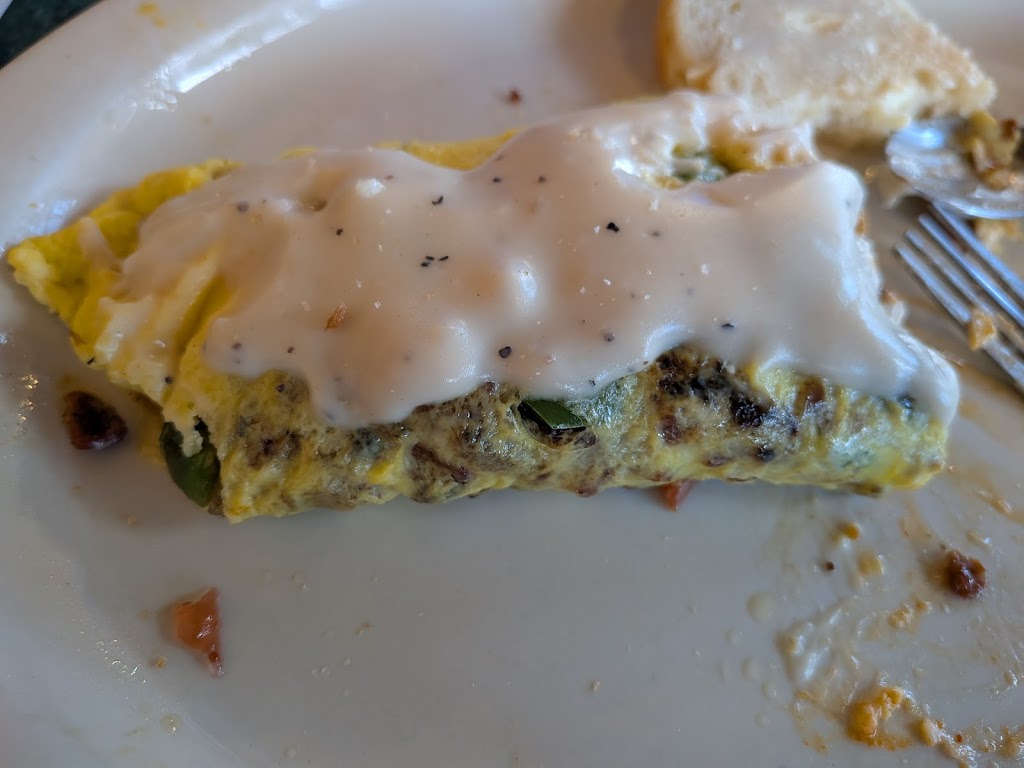 My sis and I stopped by for breakfast on our road trip and this was so good!!! She had biscuits and gravy and I had their birds nest, absolutely fire loved it!