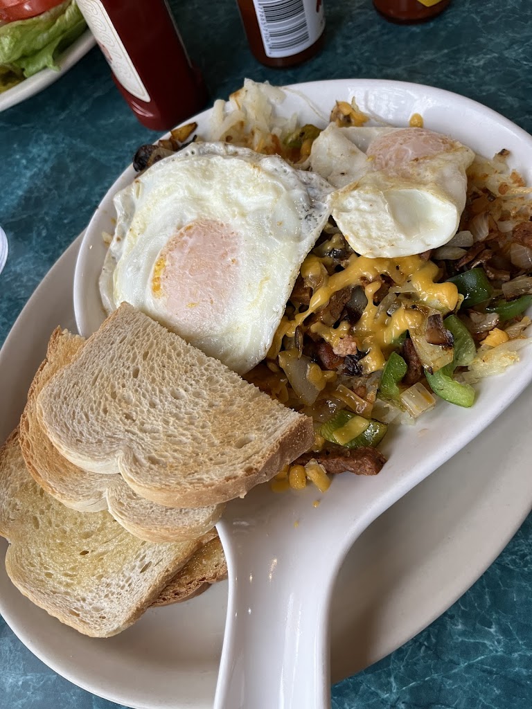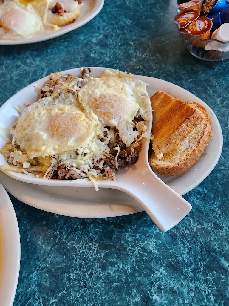 I HAD THE MEAT LOVER SKILLET FOR THE FIRST TIME, NEXT TIME I GOT TO ASK FOR THE HASH BROWNS TO BE CRISPIER.