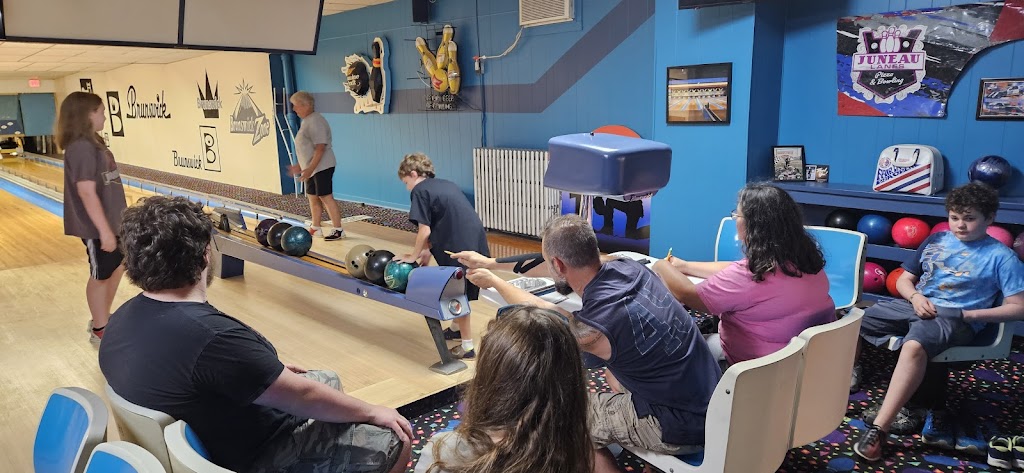 Juneau Lanes is a clean 6-lane bowling center with a throwback retro look and feel. This bowling alley has well-maintained genuine wooden lanes in perfect condition, old-school overhead projector scoring, above ground ball returns, and the original Brunswick blue colors complete with the original gold crown masking units from the 70's. All of this is located in small-town Juneau in a building originally built in the late 1800's.