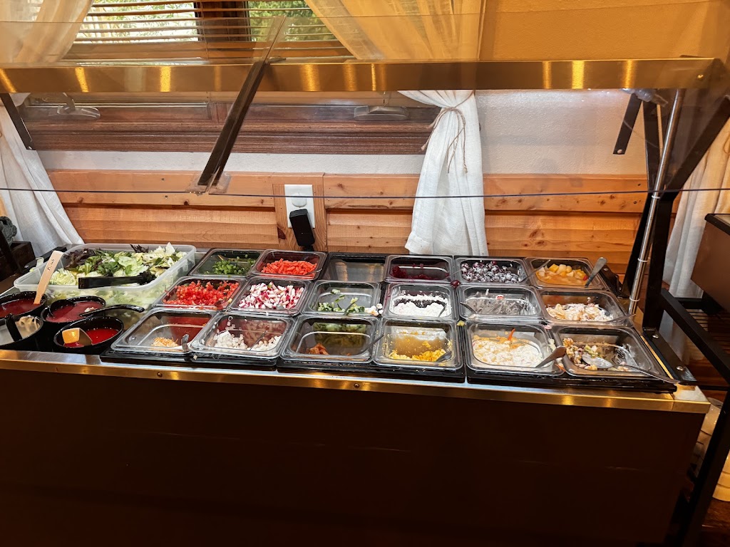 The salad bar was better than I expected from these reviews. They also had two soups, broccoli cheese and seafood chowder. Rolls and butter also available.