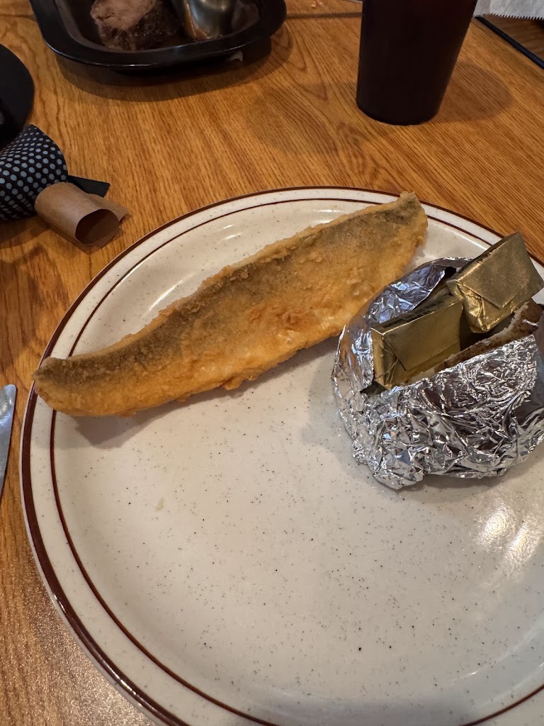 It being Saturday night we had Wisconsin’s greatest hits available - fish fry, broasted chicken, prime rib. So many potato choices. A small but clever hack of putting the butter pats inside the baked potato so the butter melts right on it. There was something for everyone, even one ice cream sundae made it to the table.