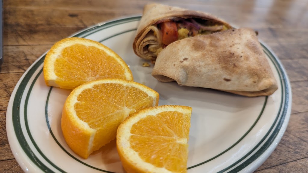 Decided to check out this local coffee place in Green Bay. Their coffee is fabulous and I got the tofu mushroom spinach wrap which came with oranges. It was a fabulous.