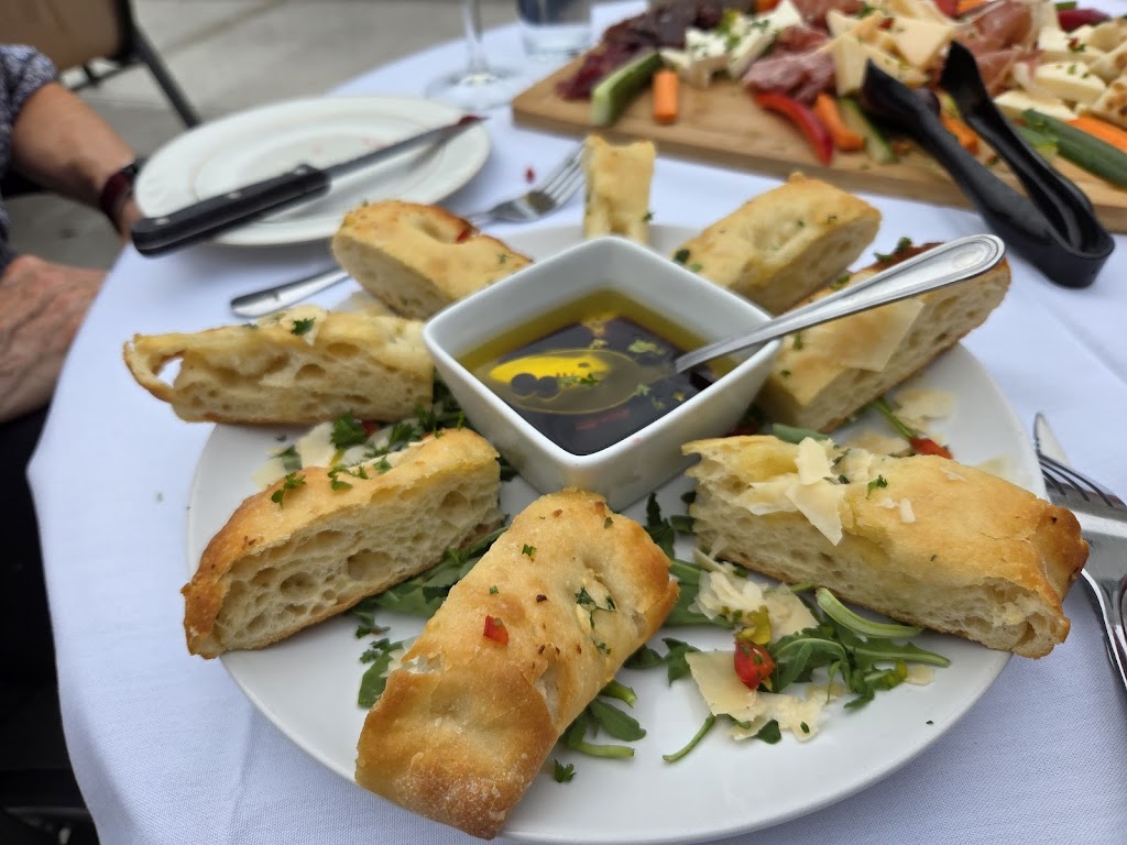 The foccacia and oil was wonderful. Hot and crusty. We gobbled that down! ( Not the same leftover!)