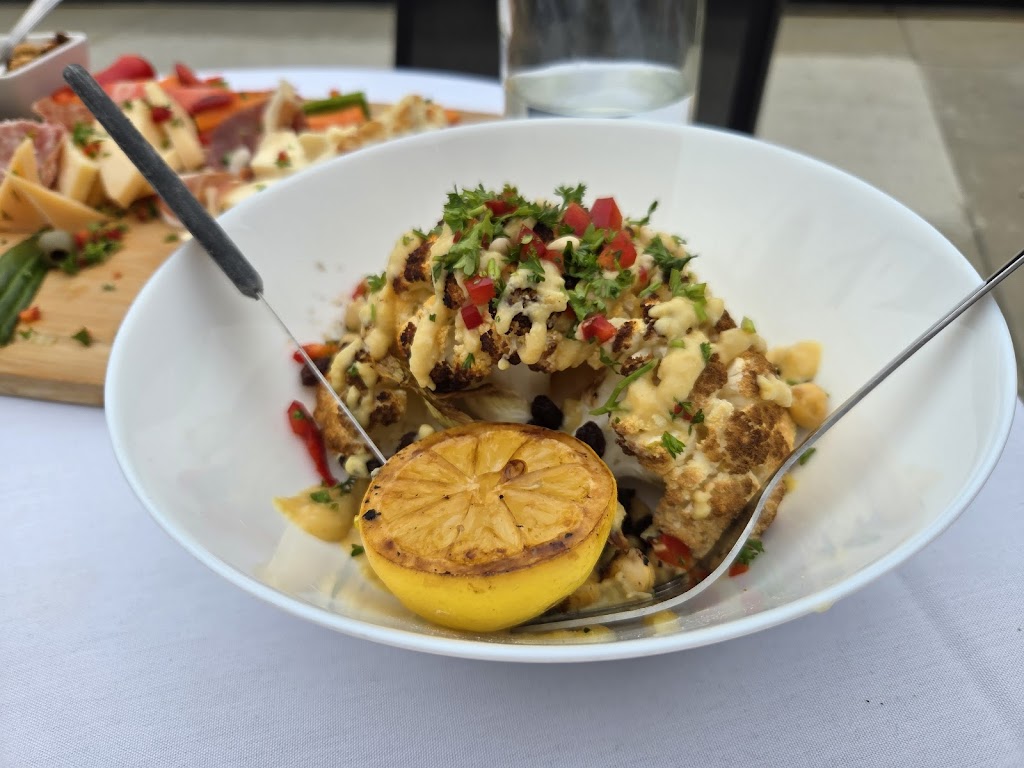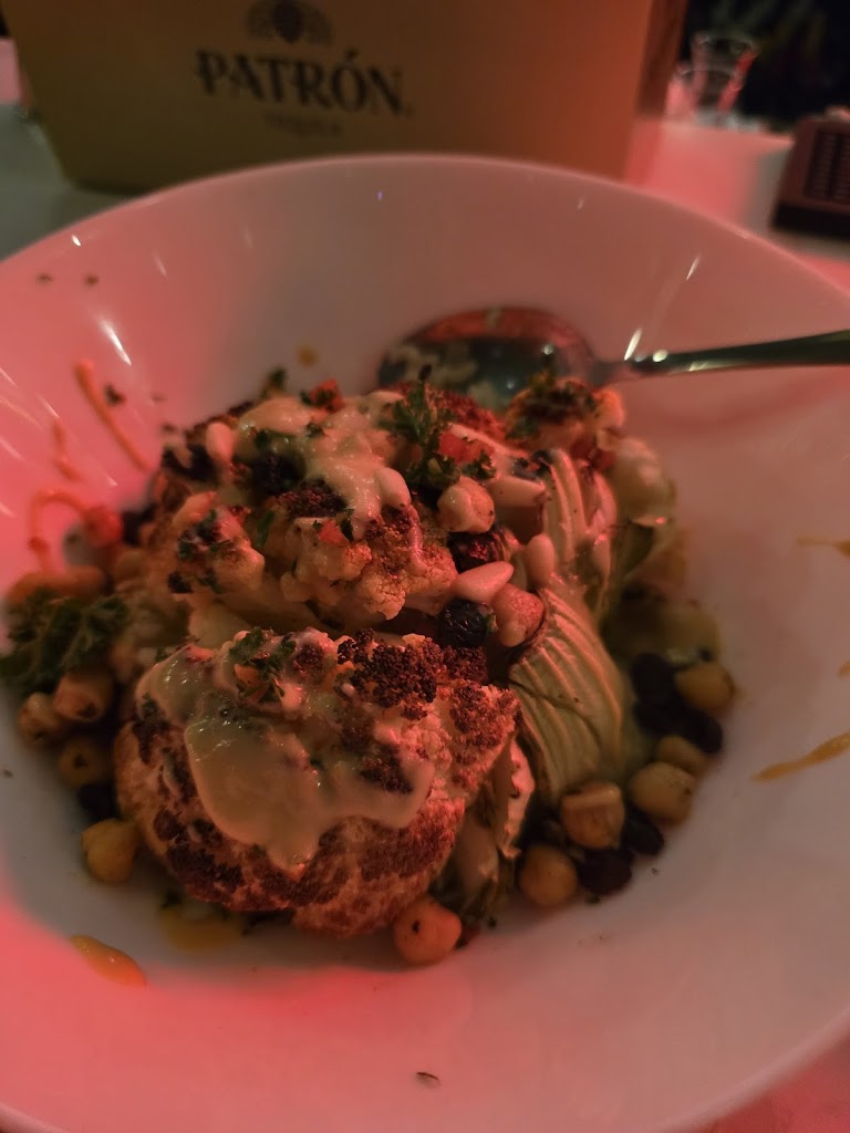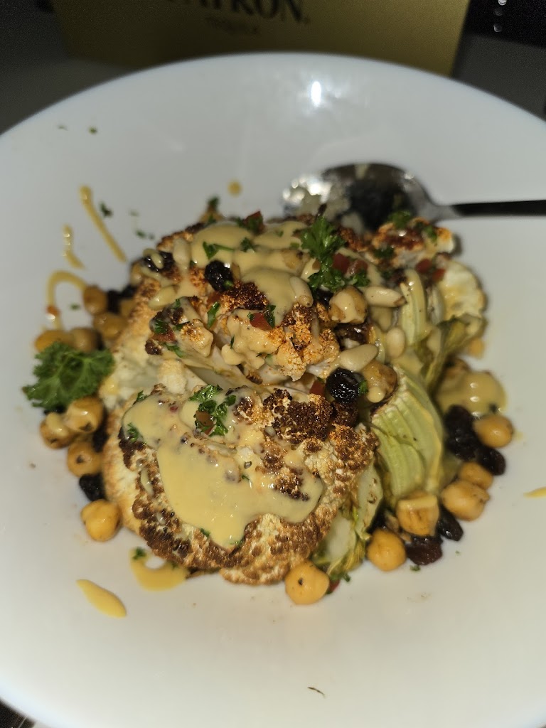 The roasted cauliflower was tasty, just not my flavor profile. This was middle eastern with hummus chickpeas raisins. We really didn't need the third entree.