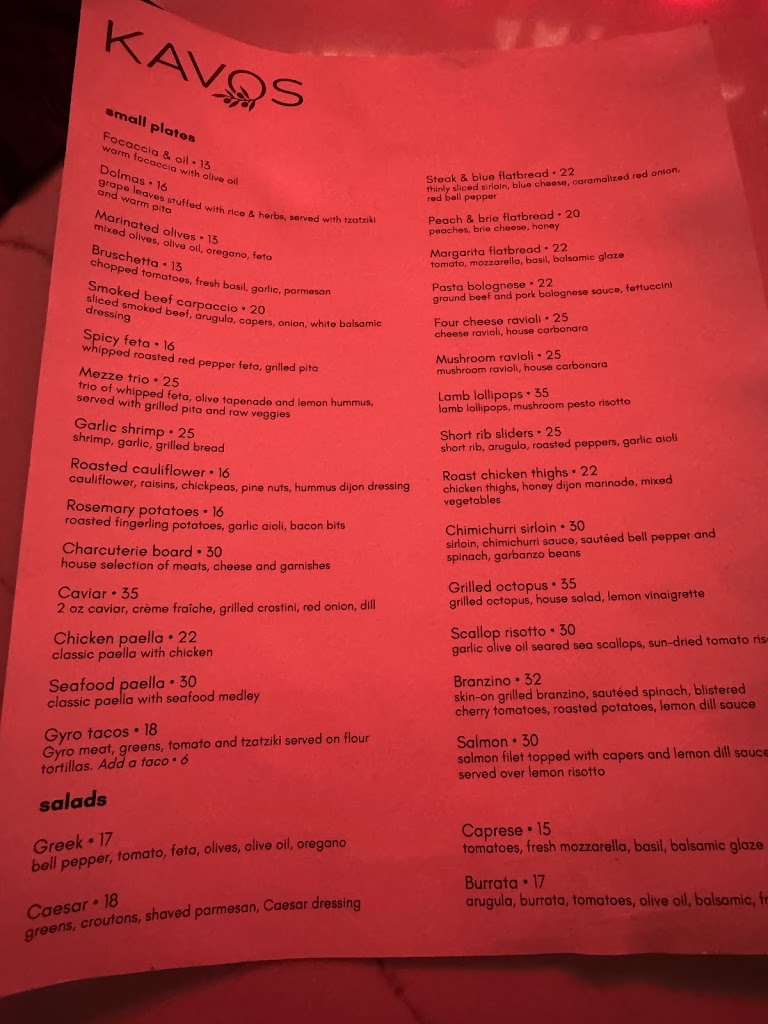 Had a great experience at KAVOS! They were fully booked but still accommodated us. The food was delicious, and Lazar was so warm and welcoming. We’ll definitely be coming back!