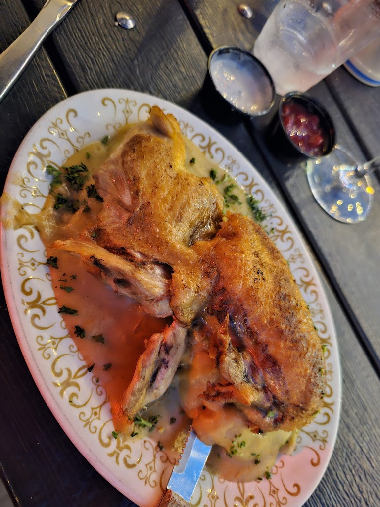 Lemon drop & cheese curds were great! Everything else was just ok but that may be because I don't eat German food often so I'm not used to their way of cooking. The duck was expensive for what it was. It had ok flavor but the potatoes were sticky & gravy ran everywhere (including off the plate). The live band was interesting