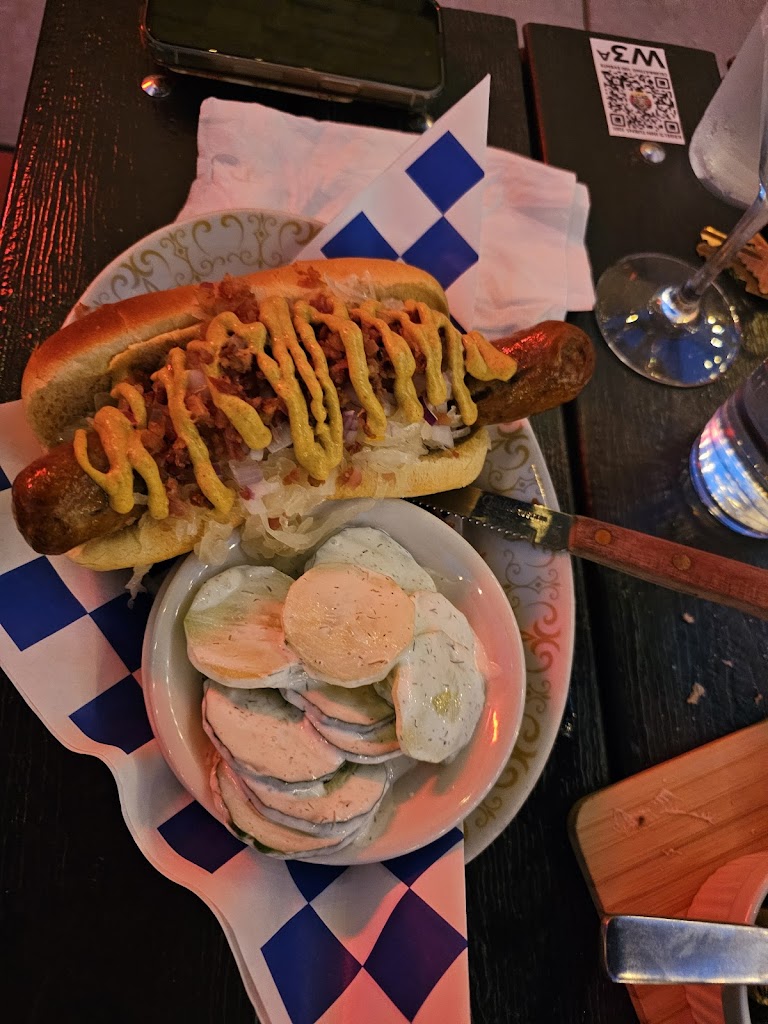It was definitively not good Bavarian and was overpriced, but it was at least edible despite the Spätzle being gray and the beans being from a can. The beer garden was nice.