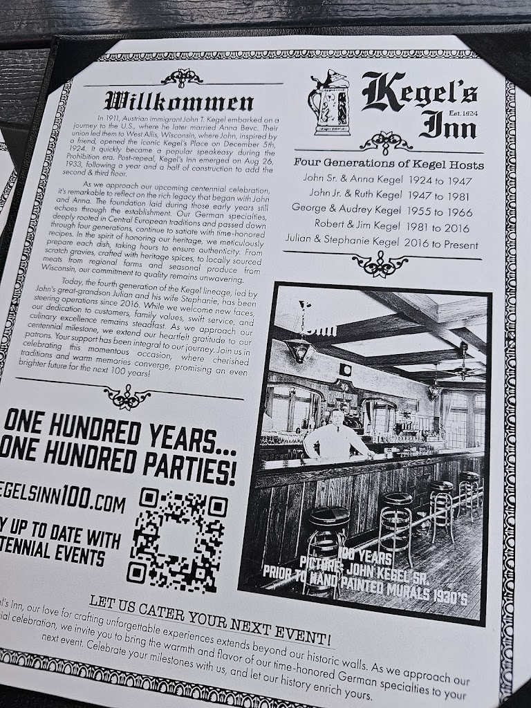 Since 1924, Kegel’s Inn has been Milwaukee’s go-to spot for authentic German food, beer, and Old Fashioned. This historic, family-owned beer hall in West Allis is famous for its award-winning fish fry, schnitzel, bratwurst, and homemade spaetzle, all served in a warm, old-world setting with hand-painted murals.