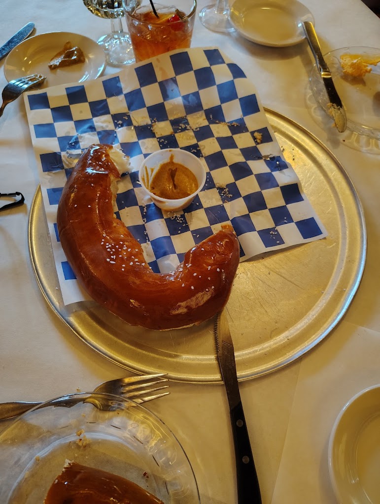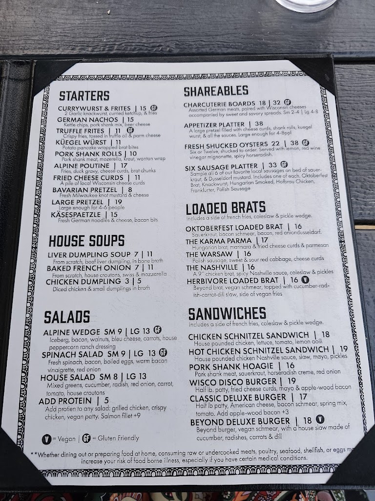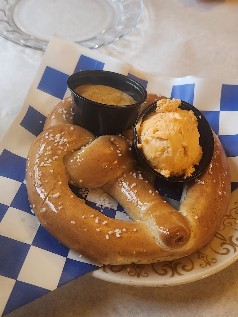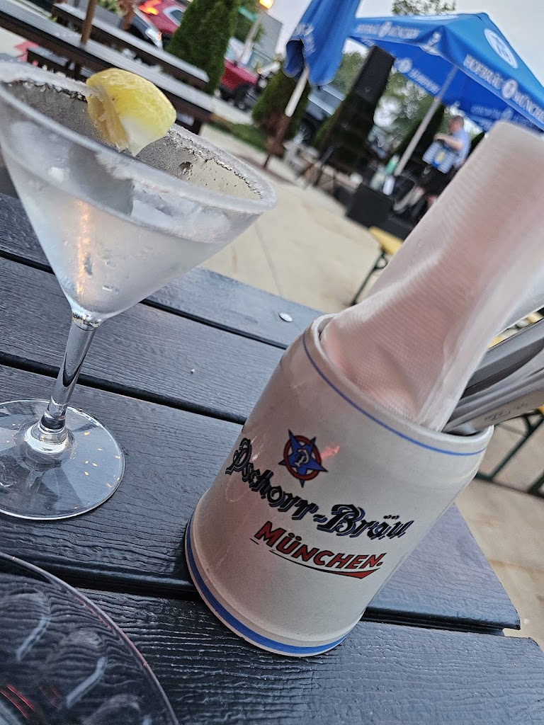 Sat outside in the beer garden, my wife and I had walleye fish frys and a Bavarian pretzel to start, everything was delicious. Their menu has some vegan options and mocktails too if you're into that, big recommend all around.