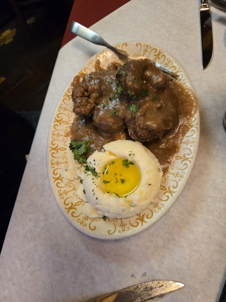 beautiful, cozy building with incredible service and stellar food!!!! best German food i’ve had in ages. Lisa, our server, was so kind and helpful and made the experience so delightful. i got the beef goulash over spaetzle and it was perfect, so tender it literally fell apart with no knife needed! everything we got was so delicious and fresh and you can taste that it’s made from scratch. will definitely come back here next time im in MKE!! thank you!
