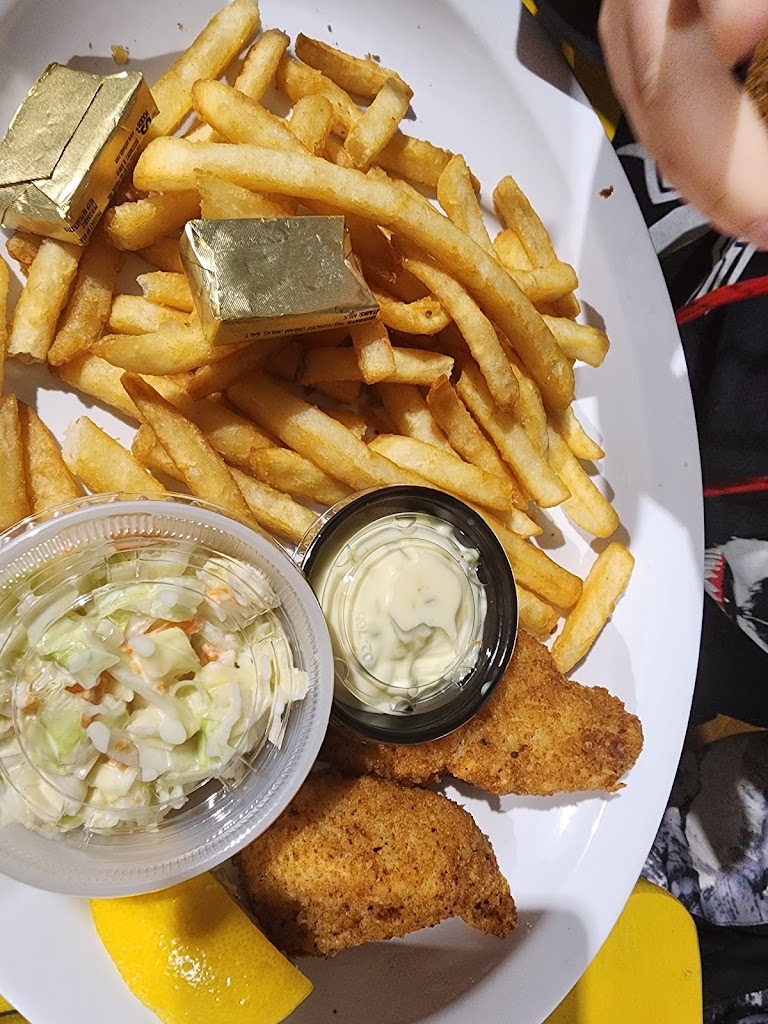 The service was a plus. Hostess and server were friendly, welcoming and our food came out quickly. We came for the fish fry because we’ve heard it’s great (ordered two 3-2-1 dishes). Highly overrated! They should be ashamed of themselves for serving that unseasoned, tasteless, over priced fish. We barely ate any of it after the first couple of bites. The fish reminded me of fish sticks I used to eat as kid. In fact, their fish may even be worse than fish sticks. You’d be better off getting some Van de Kamp’s from the frozen food section at the grocery store. The chicken dumpling soup was good, though.