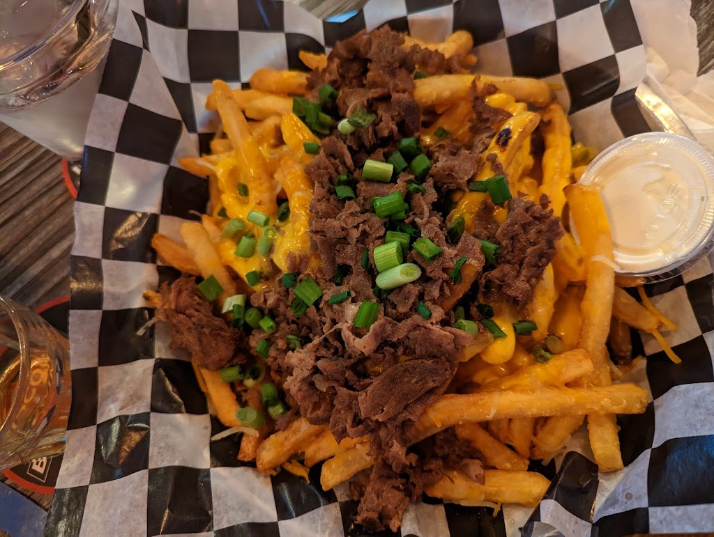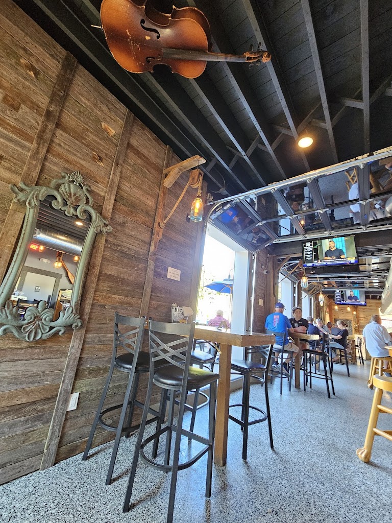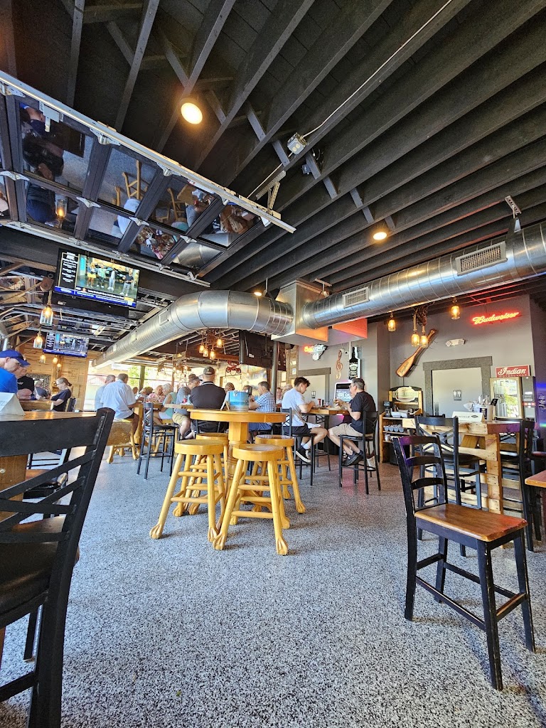 Lively bar with good atmosphere. It was a nice evening and the garage doors were open. Lots of seating with high top tables good size bar. We had the quesadilla and the surf and turf wrap. Quesadilla was huge. Very good. A classic. Surf and turf was just OK and that’s the reason for the four stars. Very little shrimp (maybe four). The tenderloin was very tough And had no flavor. The sauce was good. The wrap was good. The sweet potato fries very good. Our server was excellent. I will be back!