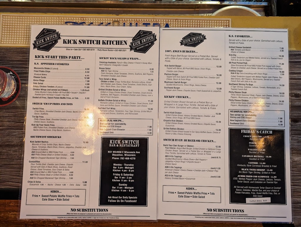 Always a good time at kickswitch. Happy hour has great deals. Food is always quick and delicious.