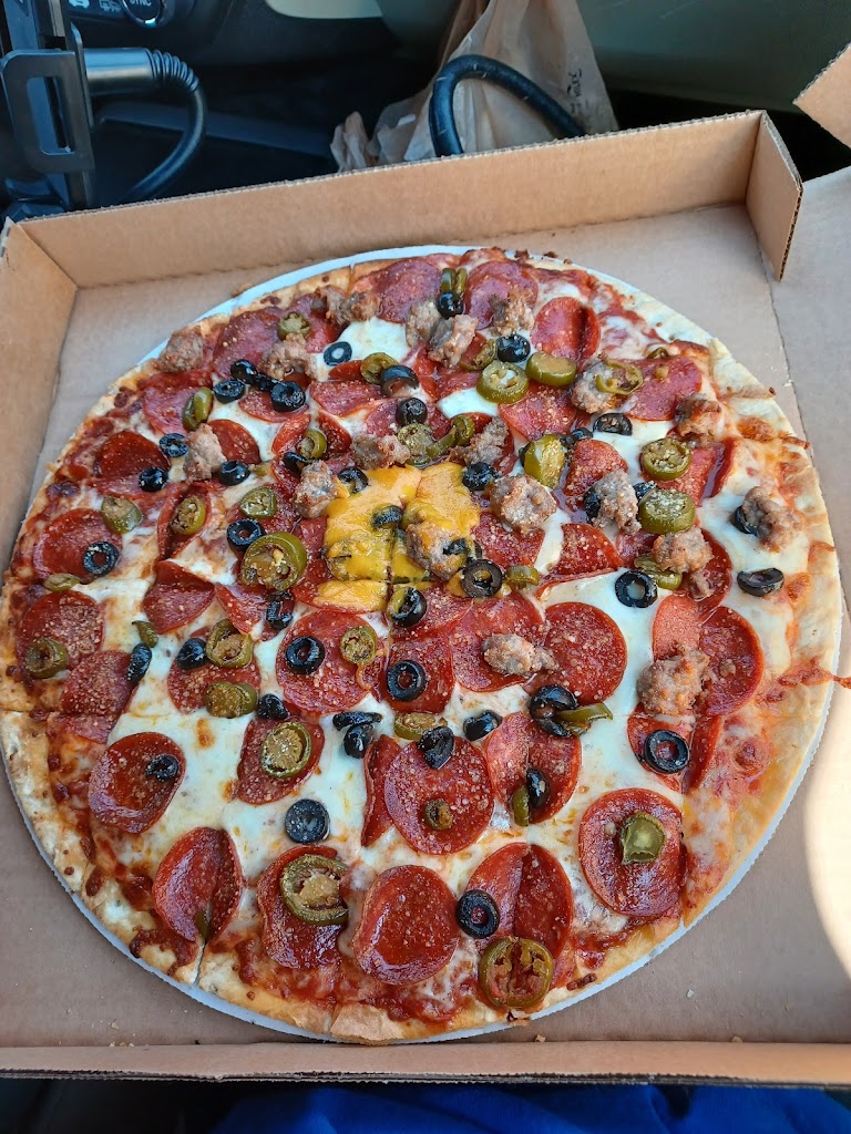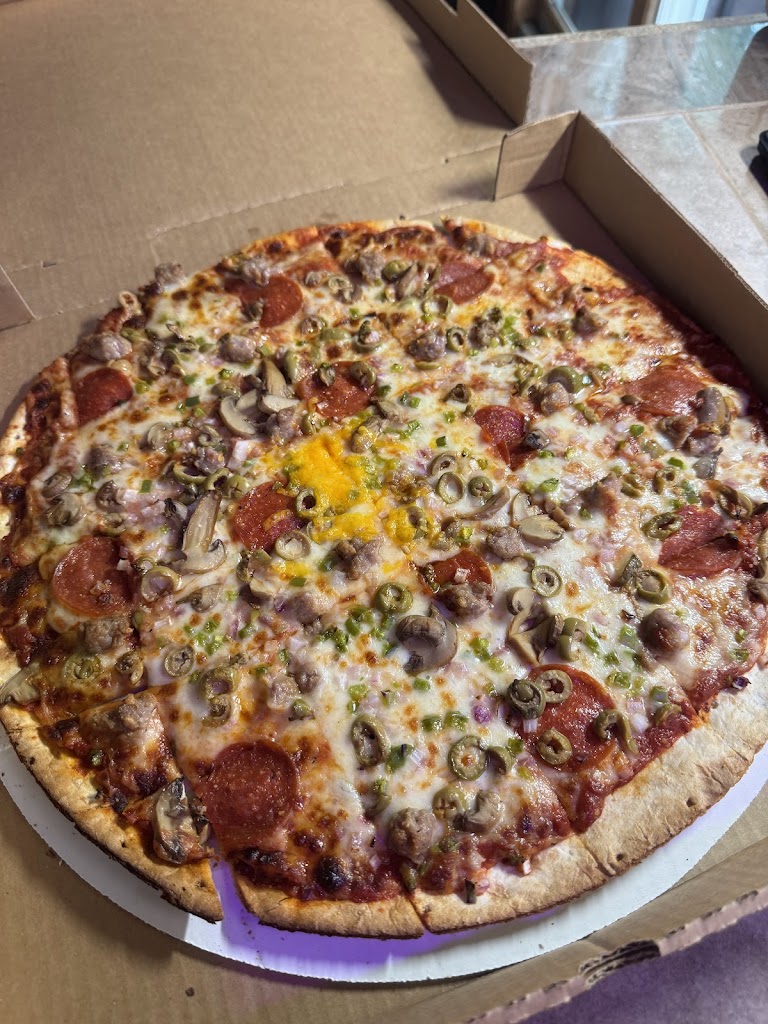 Just shrimp pizza WOW.... mushroom, pineapple, cheese n red sauce. I'm 73 and loved it no one else makes it anymore, delicious 😋. Family got super deluxe several meats onions mushrooms peppers n green olives red sauce... They loved it. Everything we've tried has been fresh n good. Thank you! 10/26/24 tried cheese tomato soup, chicken Parmesan panini, barbeque beef sub, shrimp and a deluxe pizza.... wow, all good! Soup best tomato I've had in years. Chicken Parmesan delicious. Son loved barbecue Sub. Thank you
