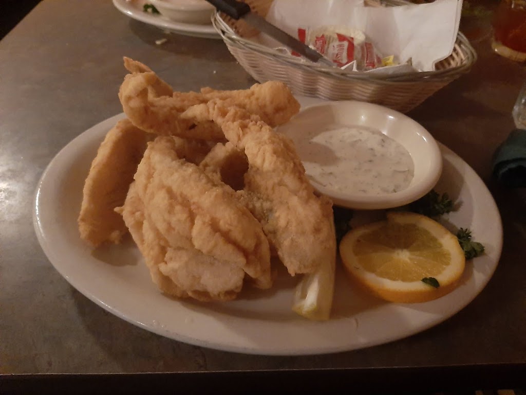 I had shrimp, excellent. My husband had fried walleye, a little dry, but good flavor.