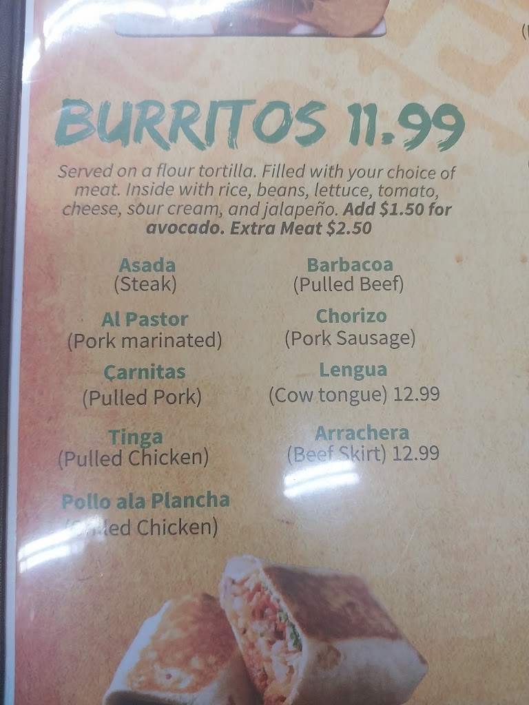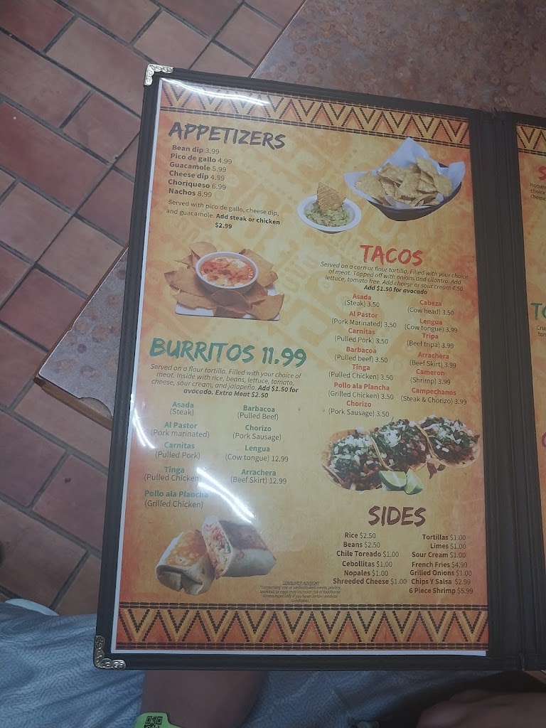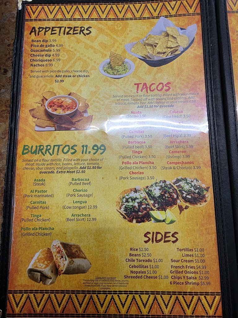 Absolutely delicious, asade burrito, multiple types of scopes, taco dinne and chilequiles with steak were all delicious. Perfect amt of spice, was authentic Mexican not the usual American version.