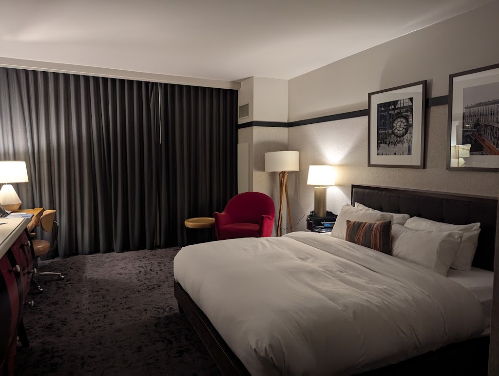 I checked into the Kimpton Journeyman at nearly 2 AM, choosing this property for its reputation, location on 31st St., and restaurant. Unfortunately, my experience was disappointing. I was placed in a disabled-accessible room (which I often prefer for the extra space), but the room was musty, dark, and smelled strongly of dog. The lighting was so poor I recommend bringing a book light if you’re visually challenged.