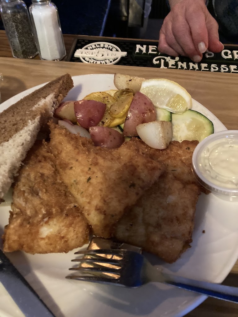 Had the fish fry… waitress was very friendly. Caramel apple bread pudding was the best! Shredded chicken nachos were also really good.