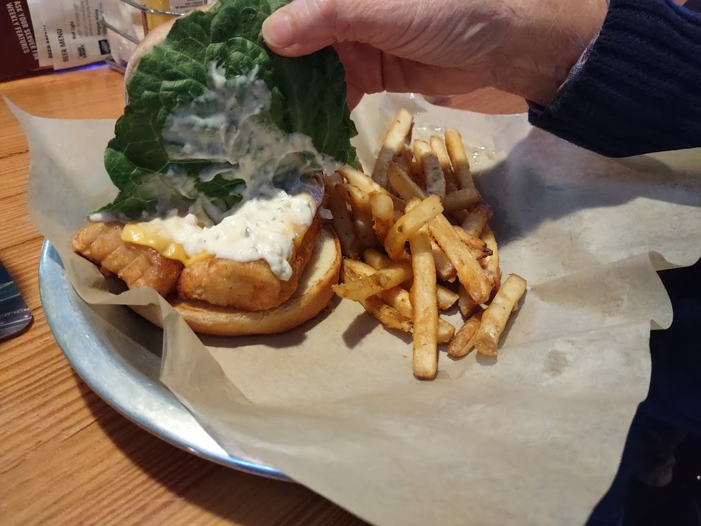 Really nice fish sandwich and sour cream and onion chive fries. Ate at the bar.