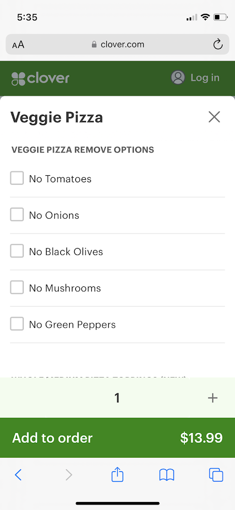 Disappointing service and new pizza. We have been loyal customers for years with previously ownership and now will not be returning. Did an online order for 2 pizzas, one being veggie, with the options below (photo), removing black olives and mushrooms adding garlic. Getting a pizza with just tomato and cheese disappointing. When I called they said they could refund me the garlic, $1.25. Will not be returning as customers for regular orders or party’s.
