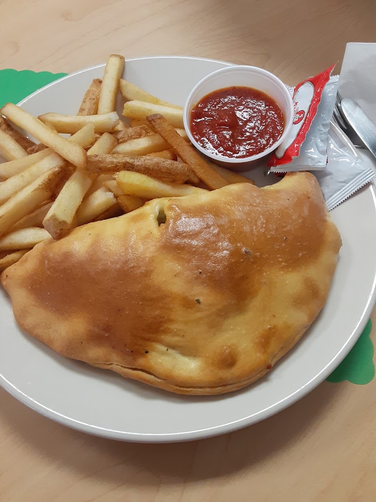 I ordered a calzone, which they let you have two choices of meat, therefore I chose sausage and pepperoni. Came with fries, and I ended up paying around 8.50 for a delicious lunch.