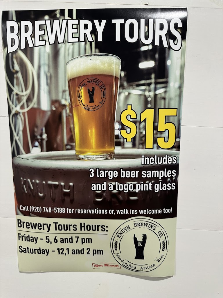 Located in historic downtown Ripon, Knuth Brewing Company offers handcrafted artisan beers brewed on site and wood fired pizzas, fresh salads, sandwiches and other eats in their beautifully restored historic brewery and outside beer garden.