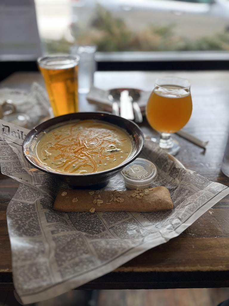 I was in the neighborhood of Ripon and wanted nachos. After a bit of research infield Knuth. The nachos didn't disappoint and the panini was even better. That being said the place was extremely busy and if you don't know it's self seating pay at the register and serve yourself the signs suggesting this are small and off to the side. The atmosphere was nice but again very busy. The nachos had a kick to them so if you don't like spicy might want to tamper down. I also had to have a piece of pizza and it was goof too. Craft beers were delicious and this is a great place to come eat and support local. Will be back if in the area again!