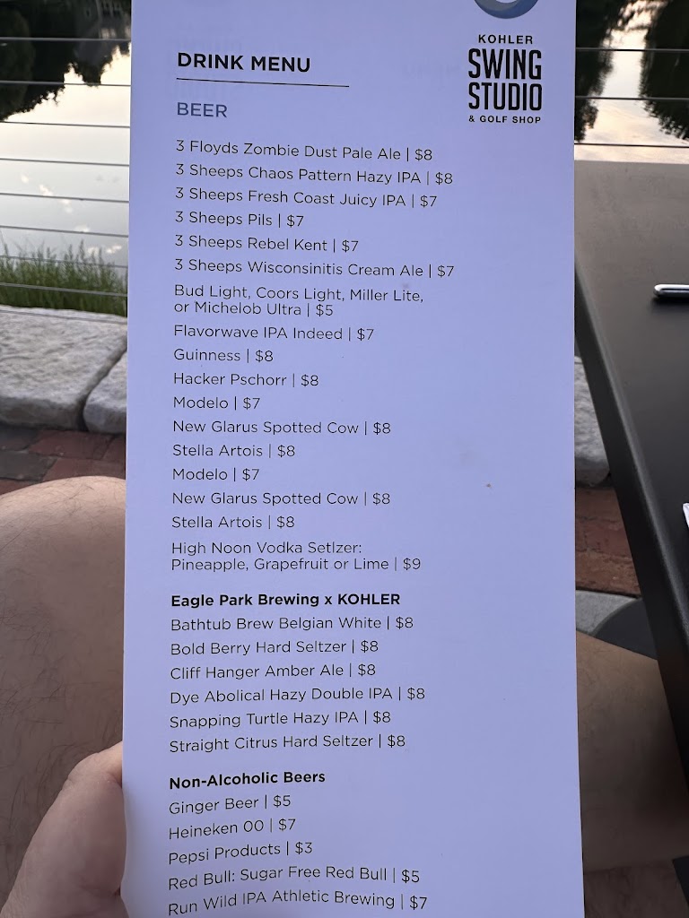 Fantastic! So much fun! We were celebrating a birthday weekend and started walking around to find a bar or pub. We walked in and immediately were given a friendly greeting by Kelsey. We ordered some drinks and sat by the lake which was so calming and relaxing. We ordered some food with the help of Molly and that was delicious. We had such a great night and both Kelsey and Molly were amazing! They seemed to know exactly when we needed to place the next order. They were both fantastic. When we return to Kohler in the future, we are certain to stop back here.